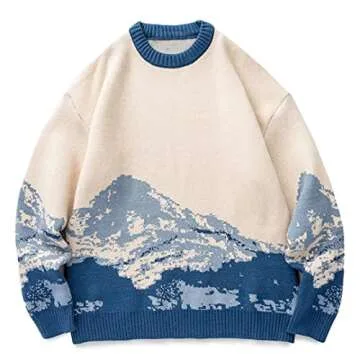 Youllyuu Snow Mountain Knitted Sweater Gradient Embroidered Pullovers Hip Hop Streetwear Blue M
