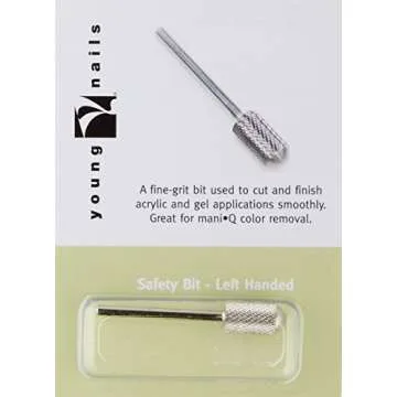 Young Nails 3/32" Left Handed Safety Bit for Nail Drill - Fine Grit Carbide Professional Nail Drill Bits - Low Noise, Heat-Resistant, Perfect for Acrylic Nails, Gel Applications & Polish Removal