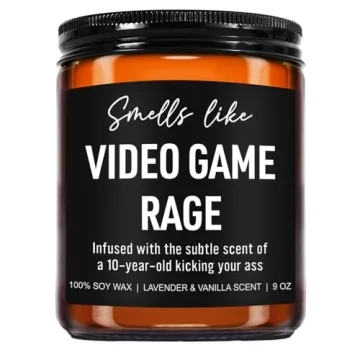 Show more The Younift Funny Video Game Rage Candle is the ultimate gift for gamers, cleverly combining humor with soothing aromatherapy. Infused with premium lavender and vanilla essential oils, this candle brings a delightful ambiance to any gaming setup. The unique blend emanates a sweet herbal fragrance that not only calms the mind but also adds a playful touch to your space. Its comically themed label guarantees laughs, making it a perfect icebreaker during gaming sessions or casual hangouts.