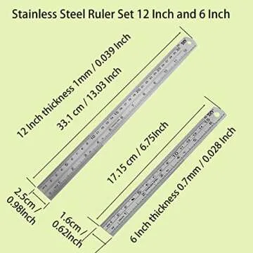 If precision and durability are your priorities in measuring tools, look no further than the YouOKLight Metal Ruler Set, which includes both a 6-inch and a 12-inch ruler meticulously crafted from high-quality stainless steel. Each ruler boasts a sleek silver finish that is not only aesthetically pleasing but also functional. The 12-inch ruler features dual-sided measurements in both centimeters and inches, while the smaller 6-inch ruler offers a compact size ideal for portability. Both rulers are equipped...