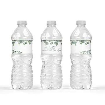 Show more Introducing our stunning Neutral Greenery Floral Design Water Bottle Wraps, designed to elevate your event with elegance and charm. Featuring a soothing eucalyptus pattern and soft greenery accents, these wraps bring a fresh touch to any celebration. Crafted for weddings, bridal showers, engagement parties, and more, each wrap is created to enhance the beauty of your gatherings. You'll receive a set of 25 bottle wraps, making it incredibly easy to decorate and personalize water bottles for medium to large parties.