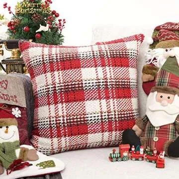 YOUR SMILE Christmas Series Knitting Wool Retro Farmhouse Tartan Pillow Cover 18" x 18"