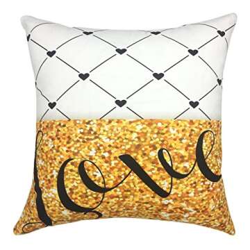 YOUR SMILE Geometric Cotton Linen Sofa Home Decor Design Throw Pillow Case Cushion Covers Square 18x18 Inch,Set of 4 (Black/White/Gold)