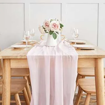Yourose 5PCS 10ft-29x120 Inches Blushing Pink Chiffon Table Runner ,Gauze Table Runner,Rustic Sheer Fabric for Romantic Wedding Decorations,Baby Shower and Birthday Party Table Decorations