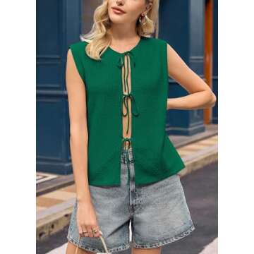 Introducing the Yousify Front Tie Tops for Women, a must-have addition to your warm-weather wardrobe! This enchanting green sweater vest combines style and comfort, making it the perfect choice for a variety of occasions. Made from a high-quality knit fabric, it promises to be super soft, breathable, and incredibly lightweight. Ideal for those hot summer days, this top is designed to keep you feeling comfortable and looking chic!