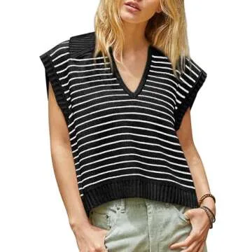 Yousify Ladies Summer Tops and Blouses 2025 Loose Fit Dressy Cap Sleeve Tunic Sweaters Vests Black M
