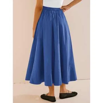 Yousify Women’s A-Line Midi Skirts Casual Elastic High Waist Flowy Swing Pleated Beach Boho Long Skirt with Pocket