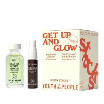 Show moreYouth To The People Youth Stacks Get Up + Glow is the ultimate morning skincare ritual designed for those wanting to kickstart their day with vibrant, luminous skin. This curated duo includes a superfood cleanser made with high-quality kale and spinach extracts, and a powerful 15% Vitamin C plus caffeine energy serum. Both are expertly crafted to strip away impurities and visibly reduce puffiness while brightening the complexion. Perfectly sized to fit travel needs, these mini products empower users to maintain their skincare routine wherever life takes them.