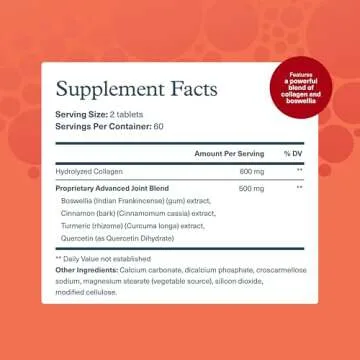 Show more Introducing the remarkable collagen supplement from Youtheory, designed specifically to support joint health and replenish vital collagen levels in the body. This product is ideal for those seeking relief from joint discomfort and aiming for enhanced mobility. Youtheory Collagen for Joints and Knees contains 600 mg of hydrolyzed collagen protein per serving, optimized for superior digestibility and absorption. How does it work? The unique formulation includes carefully selected botanicals and nutrients such as boswellia extract, cinnamon bark extract, turmeric, and quercetin, traditionally recognized for their joint-supporting properties.
