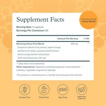 Show more If you're looking to enhance your wellness journey, look no further than this remarkable Youtheory Slimming Citrus Fruit health supplement. With over a decade of clinical research backing its efficacy, this supplement uses the power of citrus—that includes the juice, peels, and seeds of select fruits—standardized to deliver a potent 90% polyphenols. These polyphenols are essential for facilitating the function of lipase, an enzyme critical for fat metabolism. This means you can look forward to not just potential slimming benefits, but also overall health enhancements.