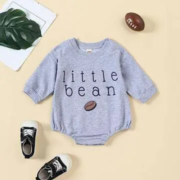 Youweixiong Newborn Baby Boy Girl Romper Bubble Long Sleeve Little Bean Print Bodysuit Ovesized Sweatshirt Casual Shirts Top Infant Fall Winter Clothes (a-Gray, 3-6 Months)