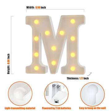 YOUZONE LED Letter Lights Marquee Alphabet Light Up Letters with Remote Control Timer Dimmable Battery powered for Events Wedding Party Birthday Home Bar Decoration (RC-M)