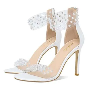yowmns Summer Clear Pearl Decoration Women's strappy Stiletto Sandals Ankle Strap Back Zipper Open Toe Fashion Fine Wedding Bridesmaid Dress Party Cupid High Heel Pumps (White, 6.5)