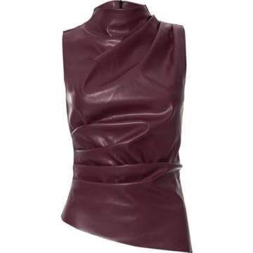 Show moreThe YOXUA Women's PU Leather Basic Sleeveless Street Solid Mock Neck Slim Fit Tank Top in Brown is the epitome of modern elegance and trendy design. Crafted from high-quality faux leather, this top boasts an ultra-soft, skin-friendly texture that is both durable and lightweight, ensuring comfortable wear throughout the day. Designed with a chic high neckline that features gathered pleated details, this piece is both sophisticated and stylish. The sleeveless design is perfect for layering or wearing alone, making it a versatile addition to your wardrobe. The back zipper closure allows for easy wear, while the asymmetrical hem adds a unique twist to this classic silhouette.