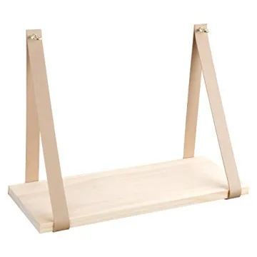 YOYAI Leather Strap Wood Floating Wall Shelf Wooden Shleves Wall Organizer Wall Mount Shelf Home Decor Kitchen Living Room Bedroom(Beige Set of 1)