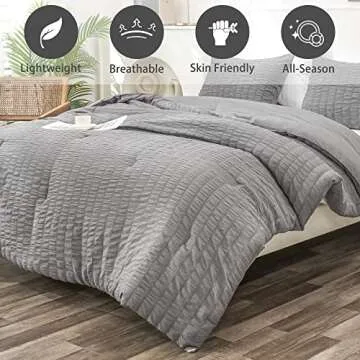 YOZEN Dark Gray King Seersucker Comforter Set - Stylish & Cozy