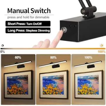 The YQNLIFA Picture Light not only boasts a stylish exterior but also offers fantastic functionality. Brightness is easily adjustable using the manual switch or remote control; you can set the light to your desired level at 0%, 60%, 80%, or 100%. Plus, it features a handy timer that can be programmed for 1, 2, 3, or 4 hours to ensure automatic shut-off, providing peace of mind while conserving energy. Perfect for art lovers wanting to shine a light on their favorite pieces without compromising on style or functionality.