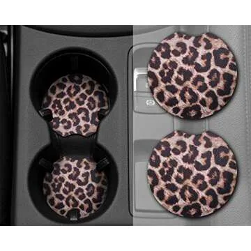 YR 2.75 Inches Car Coasters for Drinks Absorbent, Cute Car Coasters for Women, Removable Cup Holder Coaster for Your Car, Auto Accessories for Women & Girls, Set of 2 -Leopard