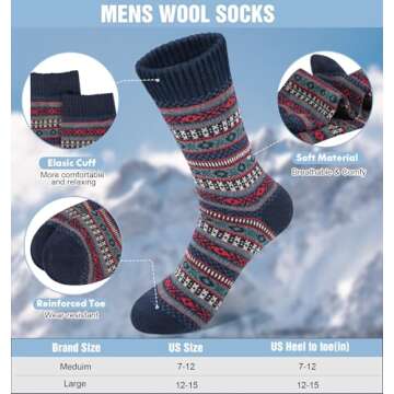 YSense 5 Pairs Mens Wool Socks Winter Warm Thick Socks Knit Causal Crew Socks for Men