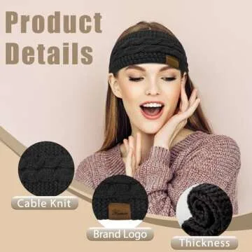 YSense Womens Ear Warmer Headband Cable Knit Winter Headbands Fleece Lined Ear Warmers Stocking Stuffers Gifts for Women