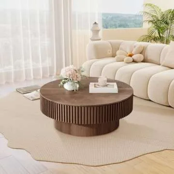 YSJZYBF 31.5'' Round Coffee Table for Living Room, Fluted Coffee Table with Hidden Storage, Solid Wood Veneered Circle Coffee Table, Modern Coffee Table Tea Table for Small Space Apartment (Walnut)