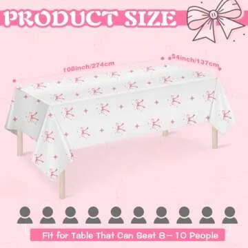 YTHETM 3 Pcs Bow Birthday Party Decorations Pink Bow Table Cloth Decor Disposable Waterproof Plastic Table Cover Party Supplies for Baby Shower Bridal Bachelorette Party Favor (54 x 108 Inches)