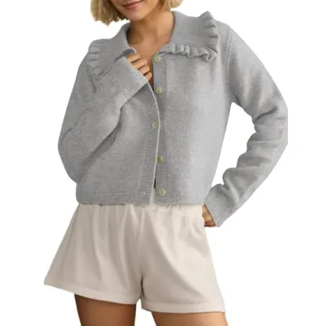 Show moreDiscover unparalleled comfort and chic style with the Ythomm Women’s Ruffle Collar Cropped Cardigan. This delightful cardigan masterfully combines soft, high-quality knit fabric with an adorable ruffle collar that makes a bold fashion statement while still feeling incredibly cozy. Ideal for the modern woman, it effortlessly transitions from casual days to stylish outings, ensuring you always look put together. The open front with a button-down closure adds functional ease, allowing you to style it as you wish—open or closed. With slightly cropped length and ribbed cuffs, this cardigan is designed to flatter any silhouette, making it a staple in every wardrobe.