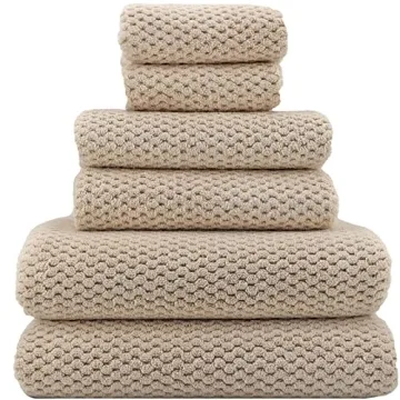 Show moreTransform your bathroom experience with the YTYC Extra Large Bath Towel Set. This premium set includes two bath towels, two hand towels, and two washcloths, offering a comprehensive solution for all your drying needs. Made from an exceptional blend of 80% polyester fiber and 20% nylon, these towels impress with a lightweight design that does not compromise on softness or absorbency. Their generous size of 29.53 x 59.06 inches makes them perfect for wrapping yourself comfortably after a shower or a refreshing dip at the beach.