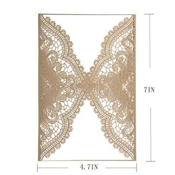 Show more Introducing the YU FENG Vintage Wedding Invitations Cards, an exquisite collection designed for couples who wish to make their special day memorable. This set includes 24 invitation pockets, featuring a stunning laser-cut lace flower design that captures the elegance and sophistication of your event. Crafted from high-quality pearl paper, these invitations boast a shimmer that adds a touch of luxury, making them perfect for weddings, bridal showers, anniversaries, and more. Each champagne pocket measures 4.7 by 7.1 inches, providing ample space for your personal touch with customizable inner sheets made from thick, printable card paper.