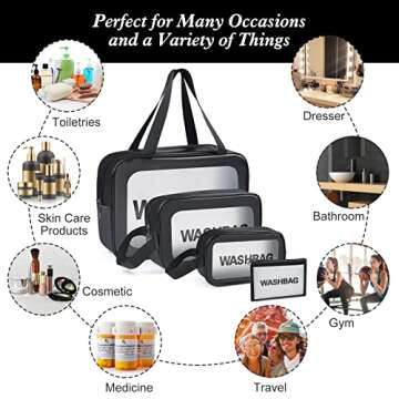 Show moreIntroducing the YuanCheng 4pcs PU Leather Portable Toiletry Bags, a versatile solution for your organizing needs. Crafted from durable and waterproof PU material, these bags are designed to withstand the rigors of travel while keeping your essentials safe and secure. With a chic translucence, you can easily spot what you need without digging through your belongings. This set includes four different sizes—a large toiletry bag, a medium makeup bag, a small cosmetic bag, and a flat bag—making it the perfect companion for any adventure, whether it's a weekend getaway or daily errands. Say goodbye to clutter and hello to a neat and organized lifestyle!
