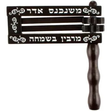 YuanKanJu Wood Purim Grogger, Traditional Noisemaker with Engraving (Medium (6.5" x 5.5"))