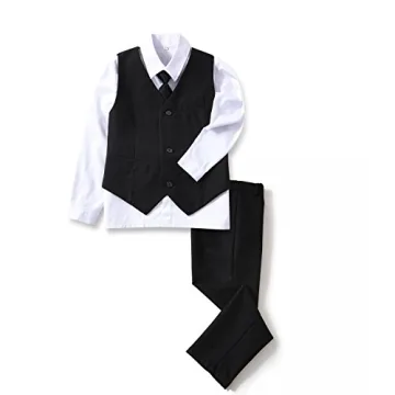 YuanLu 4 Piece Boys' Formal Suit Set - Size 7 - Black Vest, Pants & Shirt