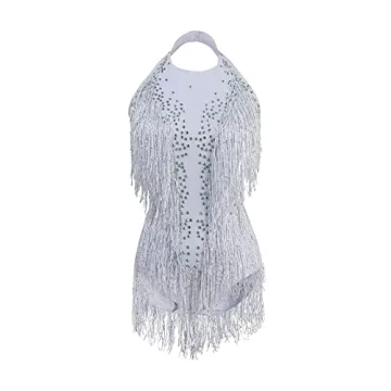 For the maintenance-conscious, keeping this bodysuit in top shape is a breeze; it can be easily washed by hand in cold water. Ideal for backup dancers or solo artists, the bodysuit is enhanced with layers of sparkling rhinestones and fringe that catch the light beautifully, creating captivating visuals from all angles. The piece comes in one size fits most, making it an exceptional gift for those looking to elevate their dance wardrobe.