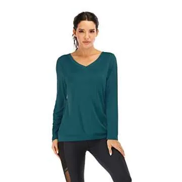Yucharmyi Yoga Tops Workout Tank Tops Open Back Shirt Racerback Long Sleeves Running Gym Shirts for Women(DarkGreen,S)