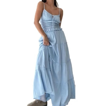 Show more Experience the perfect blend of style and comfort with the Yuemengxuan Women Y2k Ruffle Maxi Skirts Set. This stunning 2-piece outfit features a delicate sleeveless lace trim cami top paired with a flowy ruffle long skirt, designed to make you feel fabulous whether you're heading to a brunch date or a summer evening out. The soft light blue fabric elegantly drapes over your curves, enhancing your silhouette while providing a breezy, carefree vibe. The unique Y2k style showcases a nostalgic yet modern aesthetic that will surely turn heads wherever you go. Crafted with high-quality materials, this set promises both durability and comfort, ensuring you look and feel your best all day long.
