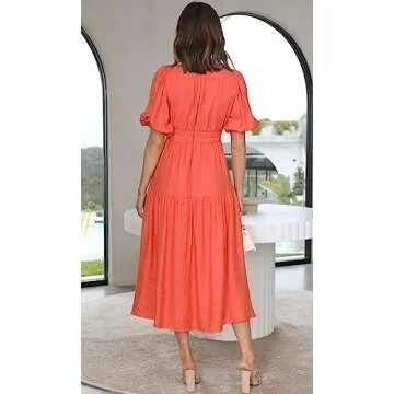 Show more Introducing the ultimate summer essential, the Women’s Puff Sleeve Maxi Dress - a stunning blend of style, comfort, and versatility. Crafted from high-quality polyester, this dress is designed to be lightweight and skin-friendly, ensuring you feel as good as you look. Whether you’re strolling along the beach or attending a summer cocktail party, the flowy silhouette and puff sleeves will make you the center of attention. Boasting a flattering V-neckline and elasticity waist, this dress accentuates your figure beautifully while offering a sense of ease and movement. The zipper back design provides a secure fit, making it perfect for women of all shapes and sizes, with options available in S/M/L/XL. Each size accommodates different body types, with S for US 4-6, M for US 8-10, L for US 12-14, and XL for US 16-18.