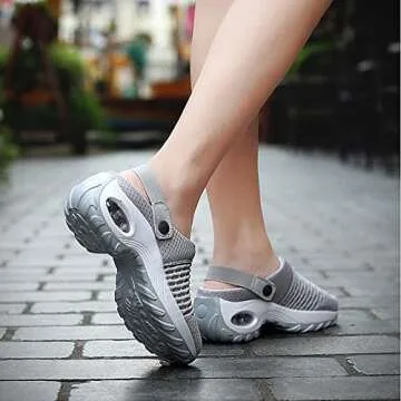YUEWS Women Diabetic Walking Air Cushion Orthopedic Slip-On Shoes-Breathable with Arch Support Mesh Mules Sneaker Sandals (6.5, Black)
