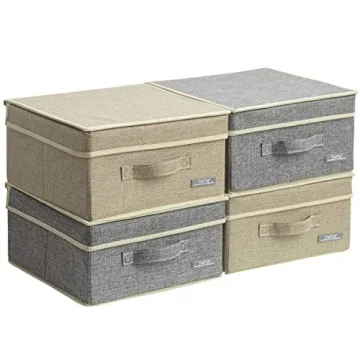 YueYue 4 Pack Small Fabric Storage Box with Lids - Elegant and Versatile Storage Solution
