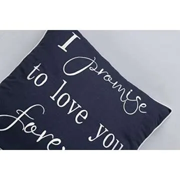 YugTex I Promise Embroidered Navy Blue Cotton Decorative Throw Pillowcase