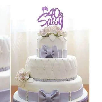 YUINYO 40 Cake Topper-40 & Sassy Cake Topper for 50th Birthday Wedding Anniversary Party Decorations (Purple)