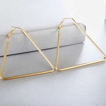 Elevate your accessory game with the stunning YUKHINS Women Girls Stainless Steel Hoop Geometric Triangle Hook Simple Fashion Earrings. Designed with a classic geometric silhouette, these triangular hoop earrings shine in a radiant gold finish, instantly complementing both casual and formal attire. Crafted from high-quality stainless steel, these earrings are not only lightweight but also hypoallergenic, ensuring all-day comfort without compromising on style....