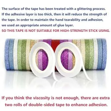 Show moreIntroducing the YUKUNTANG Skinny Glitter Washi Tape Set, a delightful collection that shines brightly with creativity and endless possibilities! This exceptional set includes 24 rolls of stunning washi tape, each roll measuring 5mm wide and 5 meters long, totaling an impressive 393.6 feet of beautiful designs at your fingertips. With 12 vibrant colors and 2 rolls per color, you can decorate and embellish your favorite projects with ease.