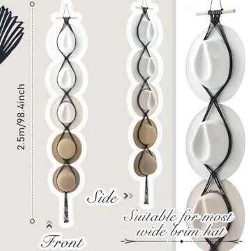 Yulejo Macrame Hat Hangers Boho Hat Rack Cowboy Hat Hanger Back of Door Hat Organizer (Black,Five Hats Style)