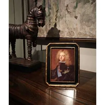 YULINK 5x7 Vintage Picture Frame, Antique Ornate Black and Gold Octagon Photo Frame, for Tabletop and Wall Display, Decorative Retro Home Decor, Old Fashioned Photo Gallery Art