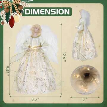 YULISKY Angel Christmas Tree Topper, 14" White Angel Treetopper, 10-Light Angel Tree Topper with Wings, Indoor Christmas Decors, Xmas Home Ornaments (Gold)