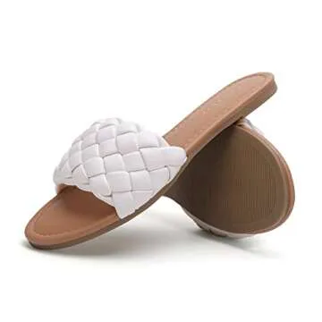 YULVSHOE Women's Braided Flat Sandals Fashion Woven Open Toe Slip On Slides Strappy Beach Sandals Slippers For Summer White Slides Size 6