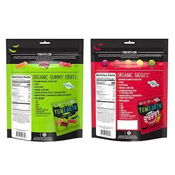 YumEarth Halloween Candy Organic Gummy Fruits, Giggles 10 Snack Packs Per Bag 2 Pack With Variety Box Mints