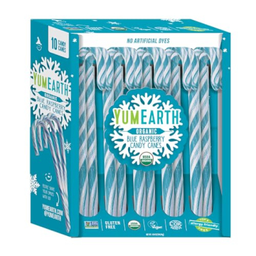 YumEarth Organic Blue Raspberry Candy Canes - 10 Count, Dye Free, Vegan