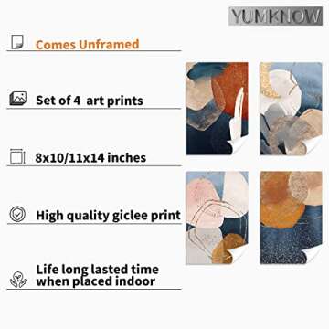 YUMKNOW Boho Abstract Wall Art - Unframed 8x10 Set of 4