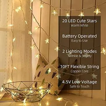 Yummuely Star String Lights 10Ft 20 LED Fairy Lights Battery Operated Waterproof Indoor Outdoor Twinkle Christmas Lights for Bedroom Party Wedding Xmas Tree Decoration (Warm White)